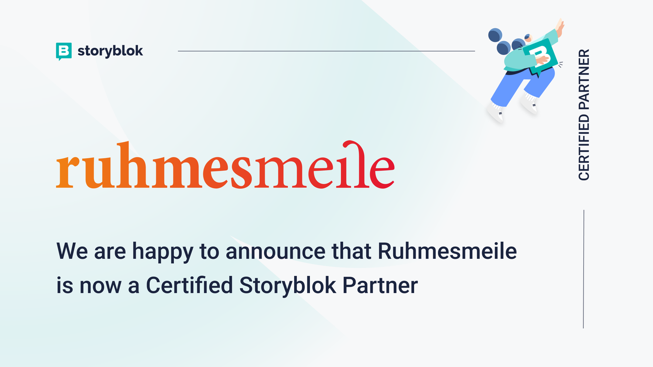ruhmesmeile ist zertifizierter Storyblok Partner. kickstartDS ist Storyblok Technologiepartner mit dem CMS Website Accelerator.